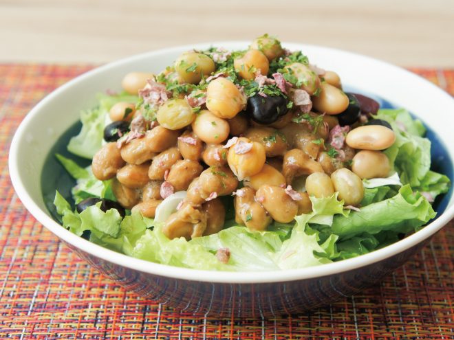 青のり梅納豆蒸し豆サラダ