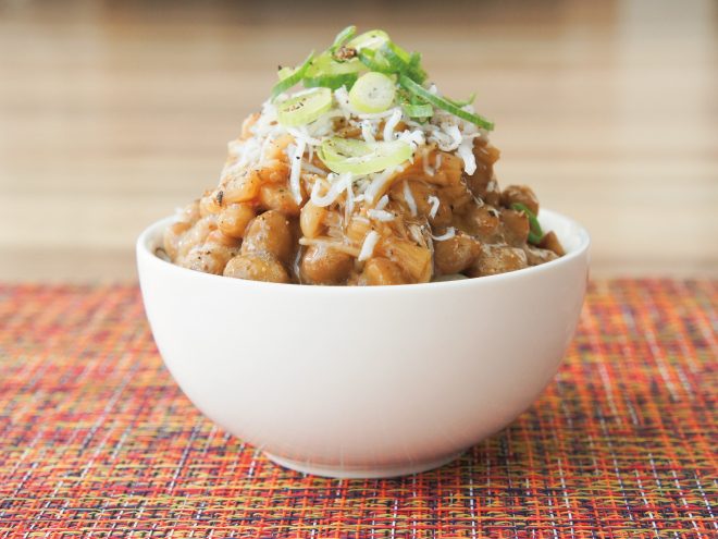 なめ茸じゃこネギスパイス納豆ご飯 材料納豆(丹念納豆)、なめ茸、ちりめんじゃこ、九条ねぎ、万能スパイス、ご飯なめ茸じゃこネギスパイス納豆ご飯の作り方①お茶碗にご飯をついだら、よく混ぜた納豆をかけます。②なめ茸、ちりめんじゃこ、九条ねぎ、万能スパイスをかけて完成です。
