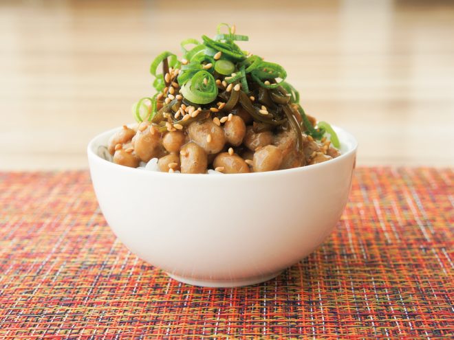 ねぎごま納豆子持ちめかぶご飯 材料納豆(丹念納豆)、子持ちめかぶ、ねぎ、ごま、ご飯ねぎごま納豆子持ちめかぶご飯の作り方①お茶碗にご飯をついだら、よく混ぜた納豆をかけます。②子持ちめかぶ、きざみネギ、ごまをかけたら完成です。