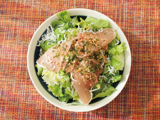 青のり胡麻じゃこ納豆生ハムサラダの作り方