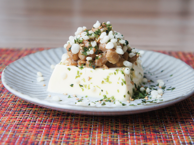 天かす海苔ごま卵豆腐納豆 材料納豆(丹念納豆)、天かす、あおさ、ごま、卵豆腐天かす海苔ごま卵豆腐納豆の作り方①お皿に卵豆腐を盛り付けたら、よく混ぜた納豆をかけます。②天かす、あおさ、ごまをかけたら完成です。
