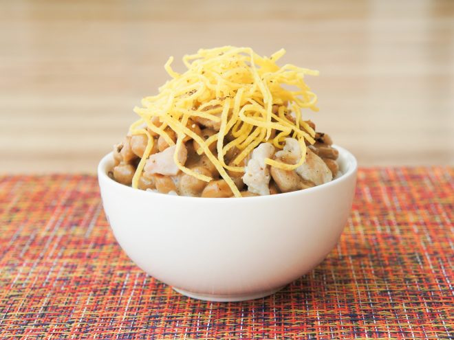 炭火焼鶏スパイス錦糸卵納豆ご飯 材料納豆(丹念納豆)、炭火焼鶏、錦糸卵、マキシマム、ご飯炭火焼鶏スパイス錦糸卵納豆ご飯の作り方①お茶碗にご飯をついだら、よく混ぜた納豆をかけます。②炭火焼鶏をのせたら、錦糸卵、マキシマムをかけて完成です。