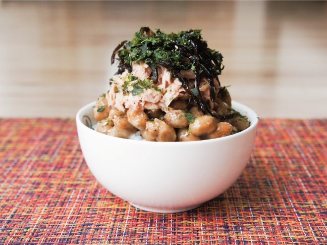 シーチキン昆布青のり納豆スパイスご飯 材料納豆(丹念納豆)、シーチキン、昆布の佃煮、青のり、マキシマム、ご飯シーチキン昆布青のり納豆スパイスご飯の作り方①お茶碗にご飯をついだら、よく混ぜた納豆をかけます。②シーチキン、昆布の佃煮、青のり、マキシマムをかけたら完成です。
