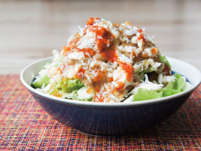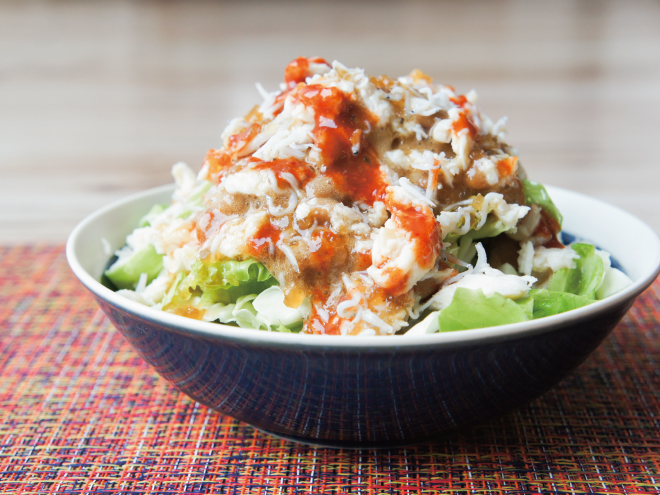 蒸し鶏ちりめんキムチ納豆オニオンサラダ 材料納豆(丹念納豆)、レタス、キャベツ、蒸し鶏、ちりめんじゃこ、キムチの素、オニオンドレッシング蒸し鶏ちりめんキムチ納豆オニオンサラダの作り方①レタスとキャベツは、食べやすい大きさに切ったら、器に盛りつけます。②よく混ぜた納豆をかけたら、蒸し鶏をほぐして散らします。③ちりめんじゃこ、キムチの素、オニオンドレッシングをかけたら完成です。