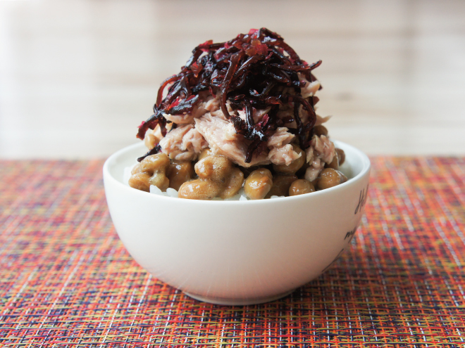 納豆(丹念納豆)、シーチキン、梅きくらげ、ご飯