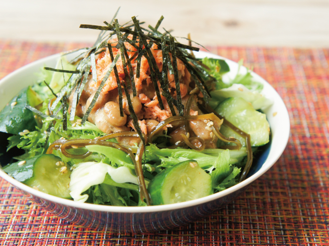 シャケのり納豆きゅうり昆布漬けサラダの作り方