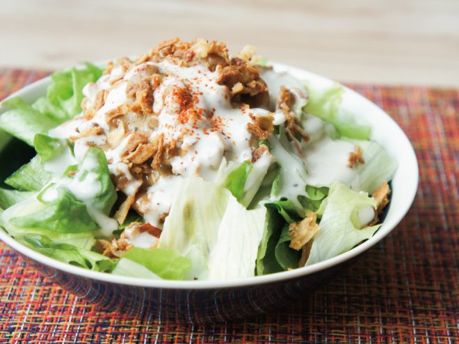 フライドオニオン納豆一味シーザーサラダドレッシング 材料納豆(丹念納豆)、レタス、キャベツ、フライドオニオン、シーザーサラダドレッシング、一味唐辛子フライドオニオン納豆一味シーザーサラダの作り方①レタスとキャベツは、食べやすい大きさに切ったら、器に盛りつけます。②よく混ぜた納豆、フライドオニオンをかけます。③シーザーサラダドレッシング、一味唐辛子をかけて完成です。
