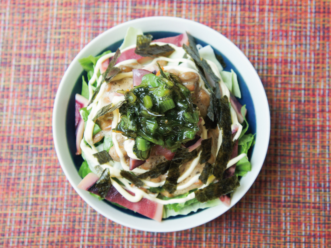 わさび野沢菜炙りイカのり納豆サラダ 材料納豆(丹念納豆)、レタス、キャベツ、炙りイカ、わさび野沢菜昆布、マヨネーズ、味付け海苔わさび野沢菜炙りイカのり納豆サラダの作り方①レタス、キャベツは、食べやすい大きさに切ったら、器に盛りつけます。②よく混ぜた納豆をかけたら、炙りイカを盛り付けます。③マヨネーズ、わさび野沢菜昆布をかけたら、のりを散らして完成です。