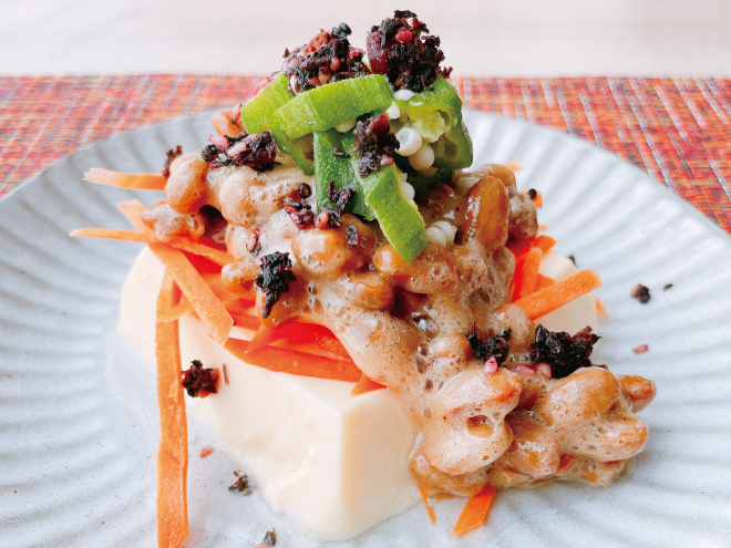 にんじんオクラ梅しそ納豆たまご豆腐の作り方