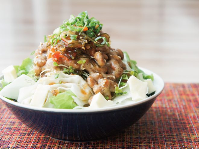 ネギ納豆数の子松前漬けモッツァレラチーズブロッコリースプラウトサラダ 材料納豆(丹念納豆)、レタス、キャベツ、にんじん、ブロッコリースプラウト、数の子松前漬け、ねぎ、ごま、モッツァレラチーズ、オニオンドレッシングネギ納豆数の子松前漬けモッツァレラチーズブロッコリースプラウトサラダの作り方①レタス、キャベツ、にんじん、ブロッコリースプラウトは、食べやすい大きさに切ったら、器に盛りつけます。②よく混ぜた納豆をかけたら、数の子松前漬けをのせます。③ねぎ、ごま、オニオンドレッシングをかけたら、モッツァレラチーズをのせて完成です。