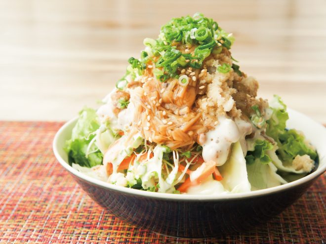 なめ茸ねぎ納豆卯の花シーザーサラダの作り方