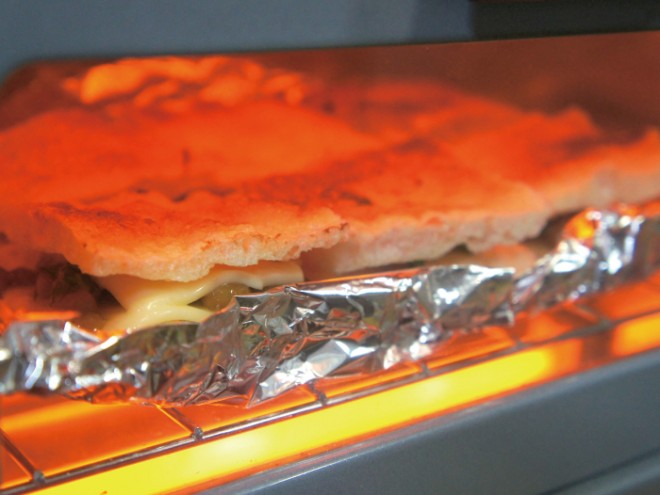 ⑤銀紙にのせて南関あげに少し焦げめがつくくらい焼いたら完成です。