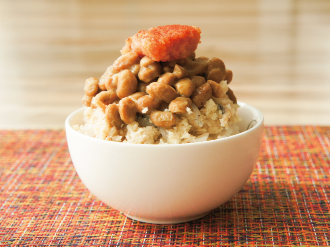 卯の花めんたい納豆麦ご飯 材料納豆(丹念納豆)、卯の花、めんたいこ、麦ご飯卯の花めんたい納豆麦ご飯の作り方①お茶碗に麦ご飯をついだら、卯の花をのせます。②よく混ぜた納豆をかけたら、めんたいこをのせて完成です。