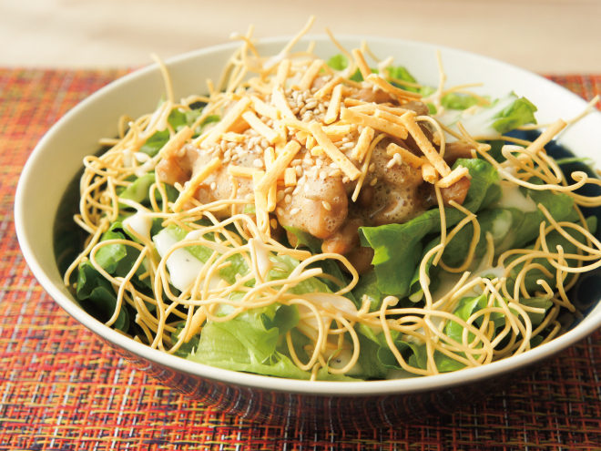 カリカリチーズごま納豆パリパリ麺シーザーサラダ 材料納豆(丹念納豆)、レタス、パリパリ麺、ごま、カリカリチーズ、シーザードレッシングカリカリチーズごま納豆パリパリ麺シーザーサラダの作り方①レタスは、食べやすい大きさに切ったら、器に盛りつけます。②よく混ぜた納豆をかけたら、パリパリ麺をのせます。③ごま、カリカリチーズ、シーザードレッシングをかけたら完成です。