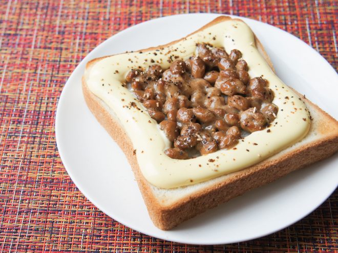 納豆(丹念納豆)、マヨネーズ、スパイス(マキシマム)、食パン