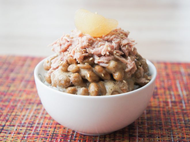 数の子シーチキン納豆麦ご飯 材料納豆(丹念納豆)、数の子、シーチキン、ごま、麦ご飯数の子シーチキン納豆麦ご飯の作り方①お茶碗に麦ご飯をついだら、よく混ぜた納豆をかけます。②シーチキンを盛り付けて、数の子をのせたら、ごまをかけて完成です。
