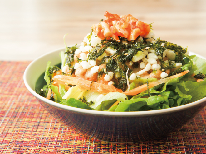 つぶ貝チャンジャ天かす納豆のりサラダ 材料納豆(丹念納豆)、レタス、キャベツ、にんじん、韓国のり、天かす、つぶ貝チャンジャ、イタリアンドレッシングつぶ貝チャンジャ天かす納豆のりサラダの作り方①レタス、キャベツ、にんじんは、食べやすい大きさに切ったら、器に盛りつけます。②よく混ぜた納豆をかけたら、イタリアンドレッシングをかけます。③韓国のり、天かすをかけて、つぶ貝チャンジャをのせたら完成です。