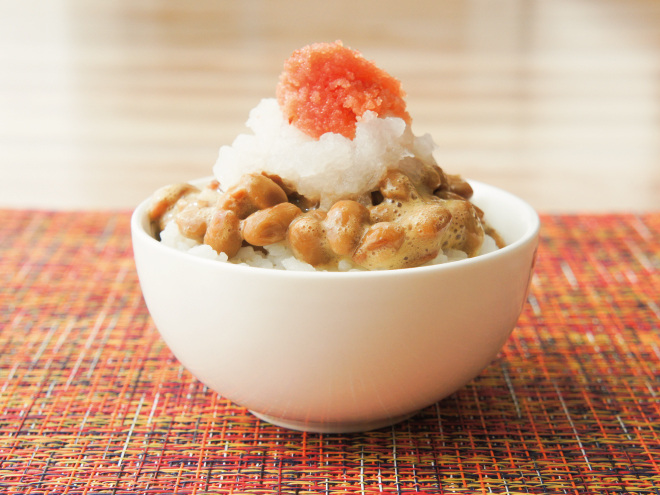 納豆(丹念納豆)、大根おろし、明太子、ご飯
