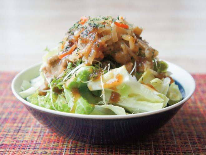 おろし納豆わさび切干し大根サラダ 材料納豆(丹念納豆)、レタス、キャベツ、ブロッコリースプラウト、切干し大根、大根おろしドレッシング、わさびふりかけおろし納豆わさび切干し大根サラダの作り方①レタス、キャベツ、ブロッコリースプラウトは、食べやすい大きさに切ったら、器に盛りつけます。②よく混ぜた納豆をかけたら、切干し大根をのせます。③大根おろしドレッシング、わさびふりかけをかけたら完成です。
