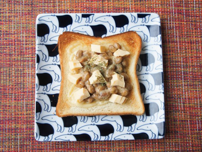 燻製マヨスモークチーズ納豆トースト 材料納豆(丹念納豆)、食パン、燻製マヨネーズ、スモークチーズ、パセリ燻製マヨスモークチーズ納豆トーストの作り方①食パンに、燻製マヨネーズをかけて、トーストします。②よく混ぜた納豆をかけたら、スモークチーズをのせます。③お好みで、パセリをかけたら完成です。