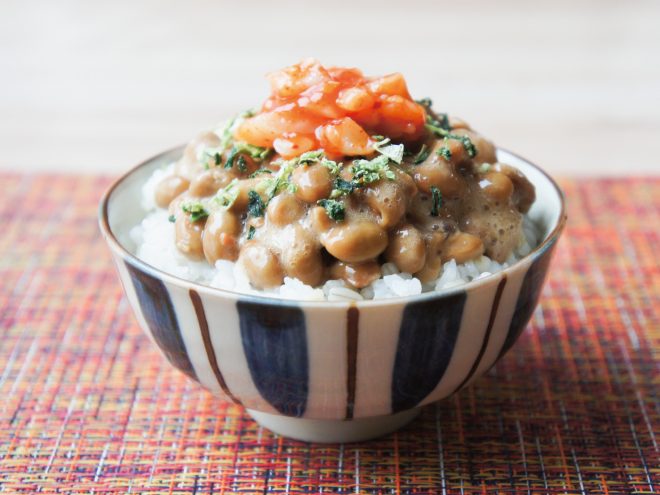 納豆青菜つぶ貝チャンジャ麦ご飯 材料納豆(丹念納豆)、青菜ふりかけ、つぶ貝チャンジャ、麦ご飯納豆青菜つぶ貝チャンジャ麦ご飯の作り方①お茶碗に麦ご飯をついだら、よく混ぜた納豆をかけます。②青菜ふりかけをかけて、つぶ貝チャンジャをのせたら完成です。