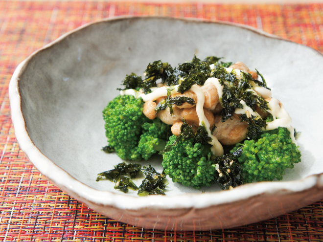 納豆(丹念納豆)、ブロッコリー、塩、韓国のり、燻製マヨネーズ