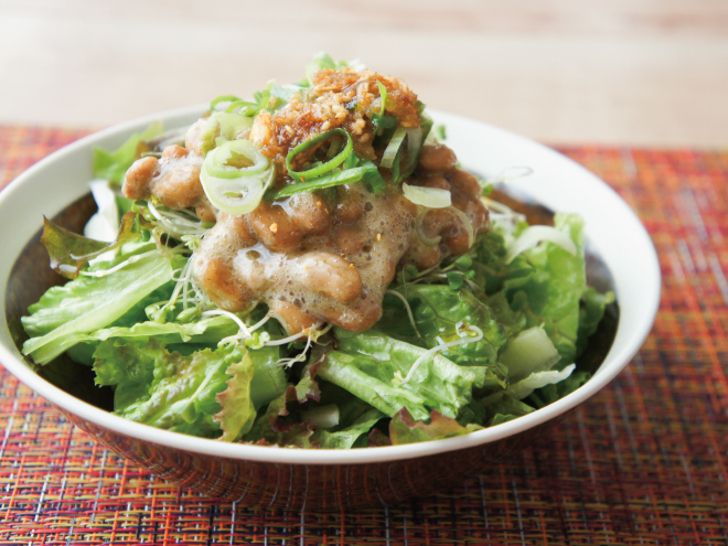ねぎ油ネギ納豆ブロッコリースプラウトサラダ 材料納豆(丹念納豆)、レタス、キャベツ、ブロッコリースプラウト、食べるネギ油、ネギ、オリーブオイルねぎ油ネギ納豆ブロッコリースプラウトサラダの作り方①レタス、キャベツ、ブロッコリースプラウトは、食べやすい大きさに切ったら、器に盛りつけます。②よく混ぜた納豆をかけたら、刻みねぎをかけます。③ネギ油、オリーブオイルをかけて完成です。