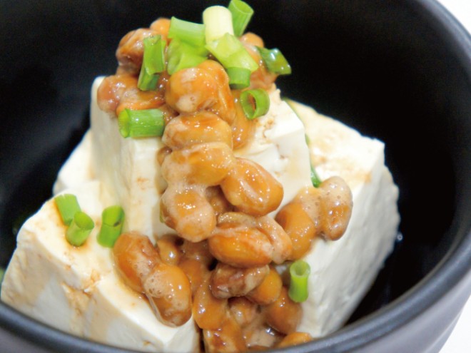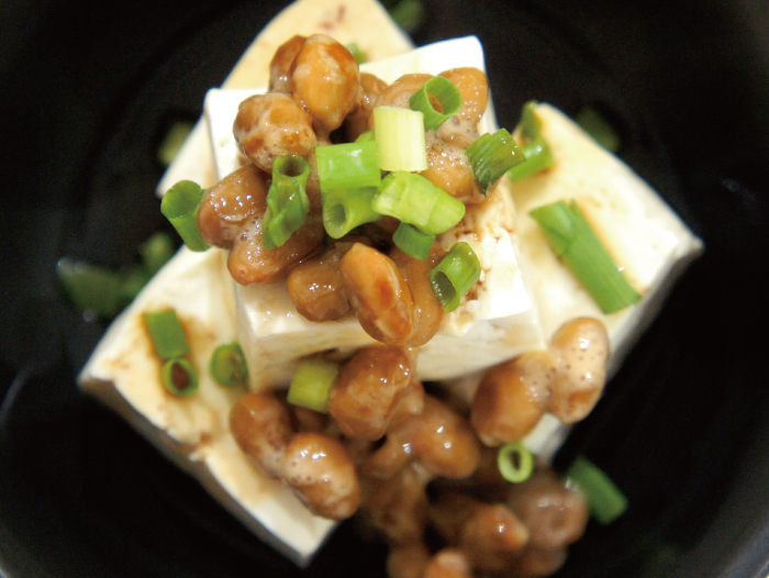 納豆、豆腐、青ねぎ、しょうゆ