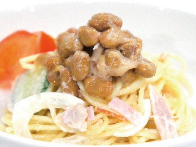 納豆サラダパスタ 材料納豆、サラスパ、ハム、きゅうり、シーチキン、マヨネーズ、塩、コショウ納豆サラダパスタの作り方①サラスパをゆで、ザルで水切りしたのち冷まします。②冷ましている間、材料(ハム、きゅうり)を切り、納豆をまぜておきます。③そのあとに、それぞれの材料を全部入れ、マヨネーズ、塩、コショウで味付けをしてよく混ぜ合わせます。④最後に器に盛り付けたら完成です。