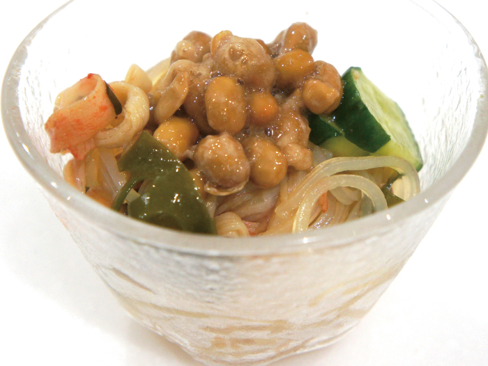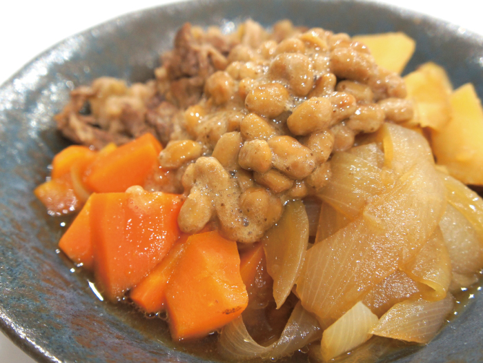 納豆、にんじん、ピーマン、キャベツ、とんこつ袋麺、塩コショウ