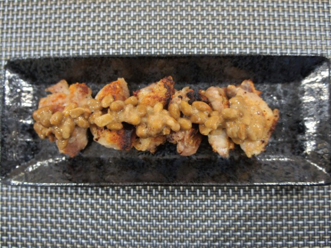 ①フライパンで鶏肉を焼き、塩コショウをかけます。