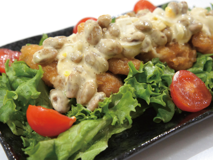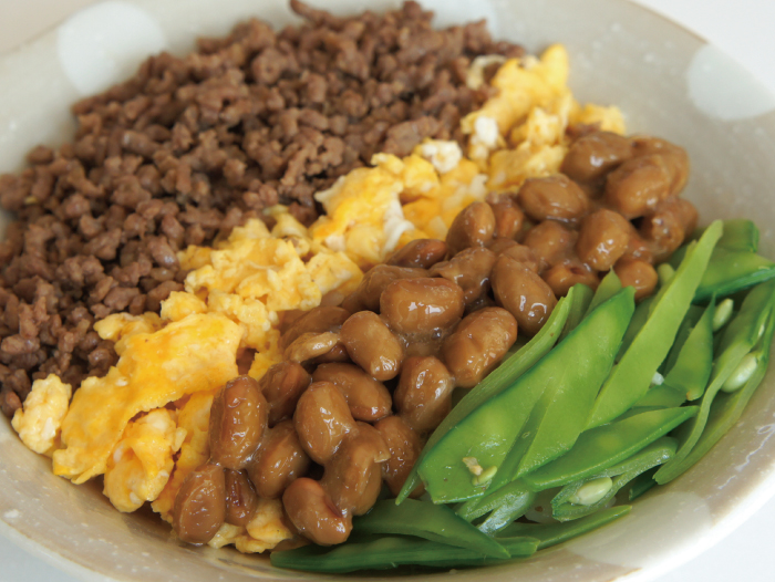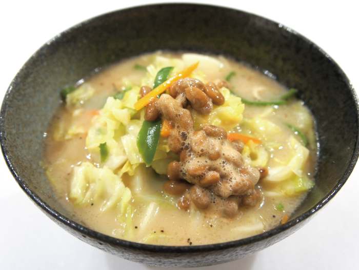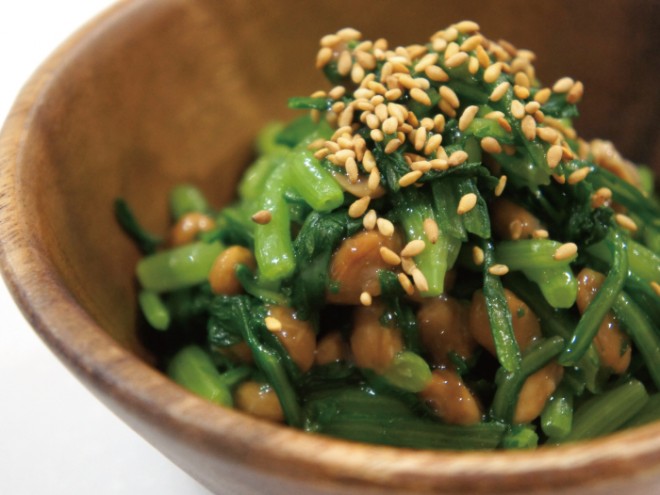 ③そして納豆と混ぜ合わせ、付属のタレをかけゴマをかけたら完成です。