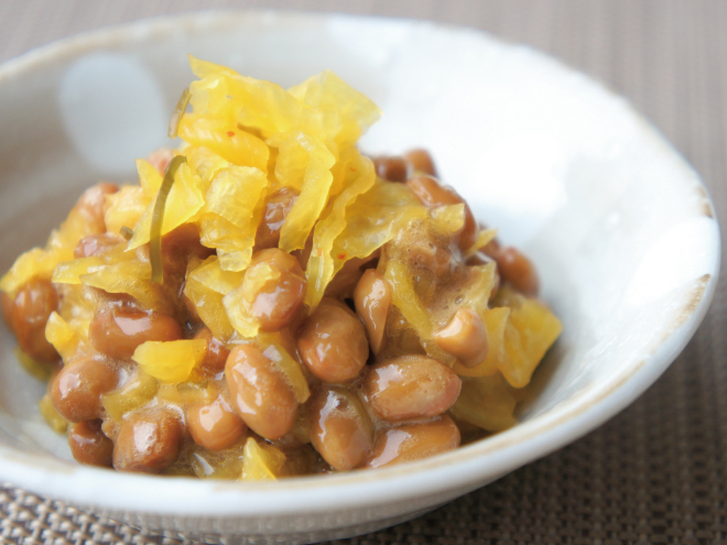 ①たくわんを刻んで納豆とまぜ合せたら完成です。
