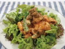 納豆(丹念納豆)、水菜、しらす、厚揚げ、ポン酢