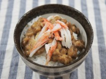 納豆(丹念納豆)、ひき割り納豆、竹輪、きゅうり、スライスチーズ