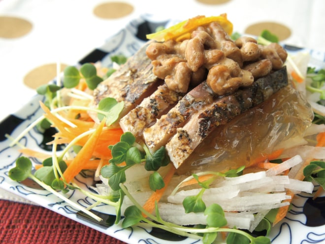 炙りさばサラダ納豆|納豆好きにはたまらないレシピが盛りだくさん