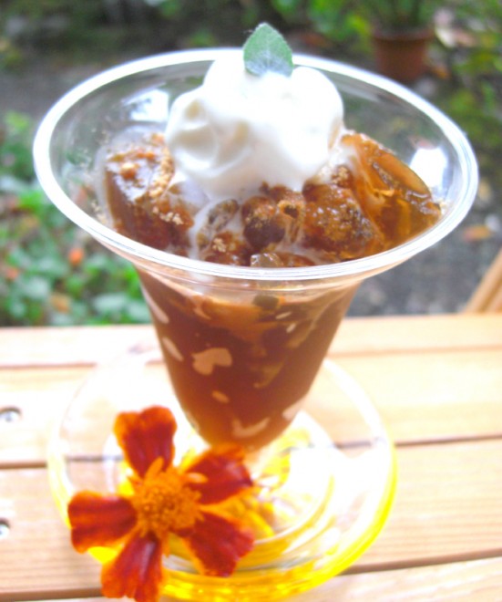 ③その中に黒蜜をよく混ぜ余熱をとって冷蔵庫に入れ固めます。