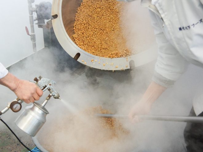 納豆菌が舞っていますし、作業場所によっては、釜の蒸気等で、お肌にもいいらしいです。(感じ方は個人差があります)