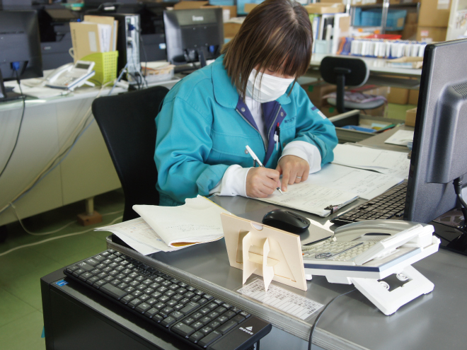 受けた注文によっては、伝票を書いたり、工場へ注文を上げたりもします。